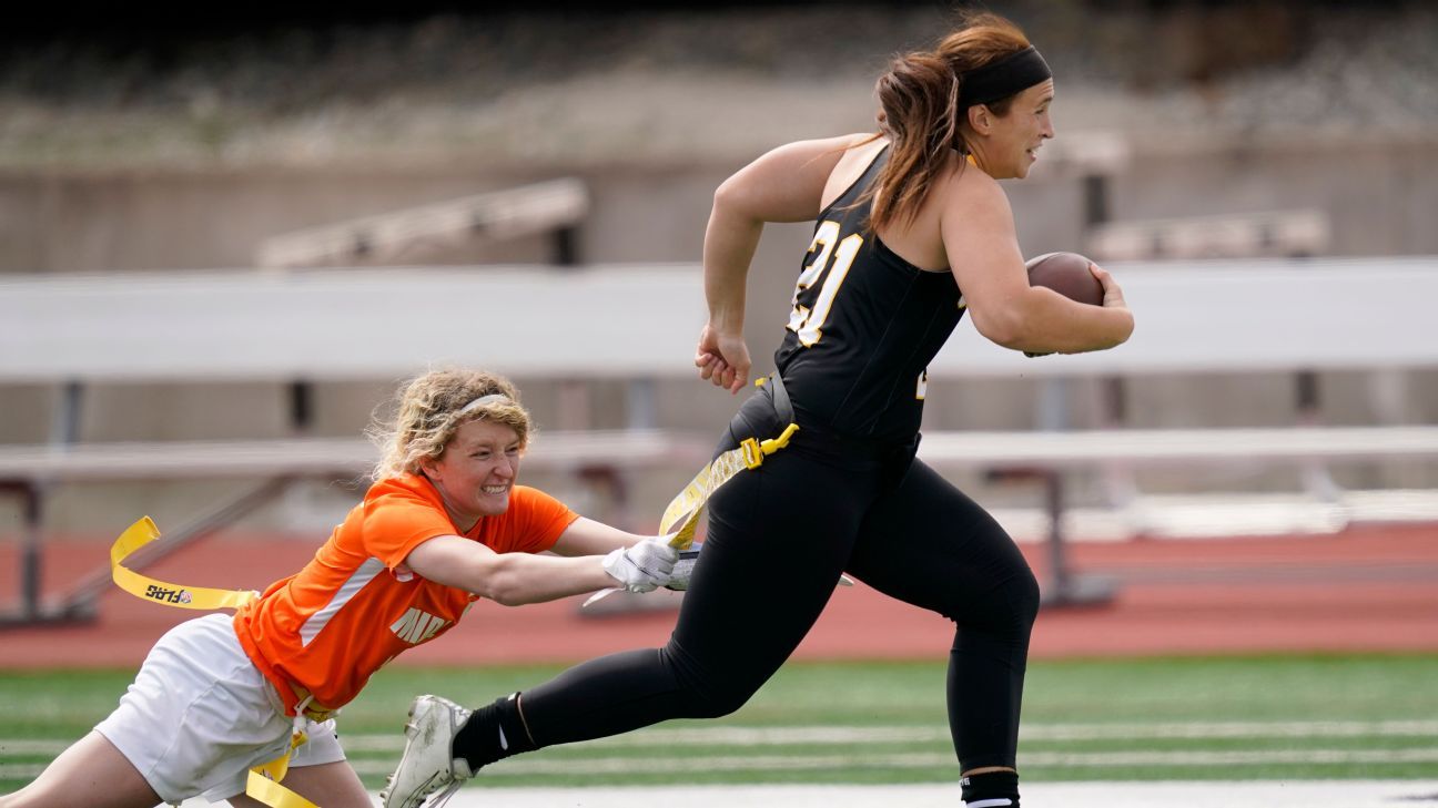 La Conferencia de Atlantic East está lanzando su primera temporada de fútbol de bandera femenina universitaria esta primavera, lo que la convierte en la primera conferencia de la NCAA en hacerlo y aumentando el optimismo de que el fútbol de la bandera será reconocido por la NCAA como un deporte oficial de campeonato.