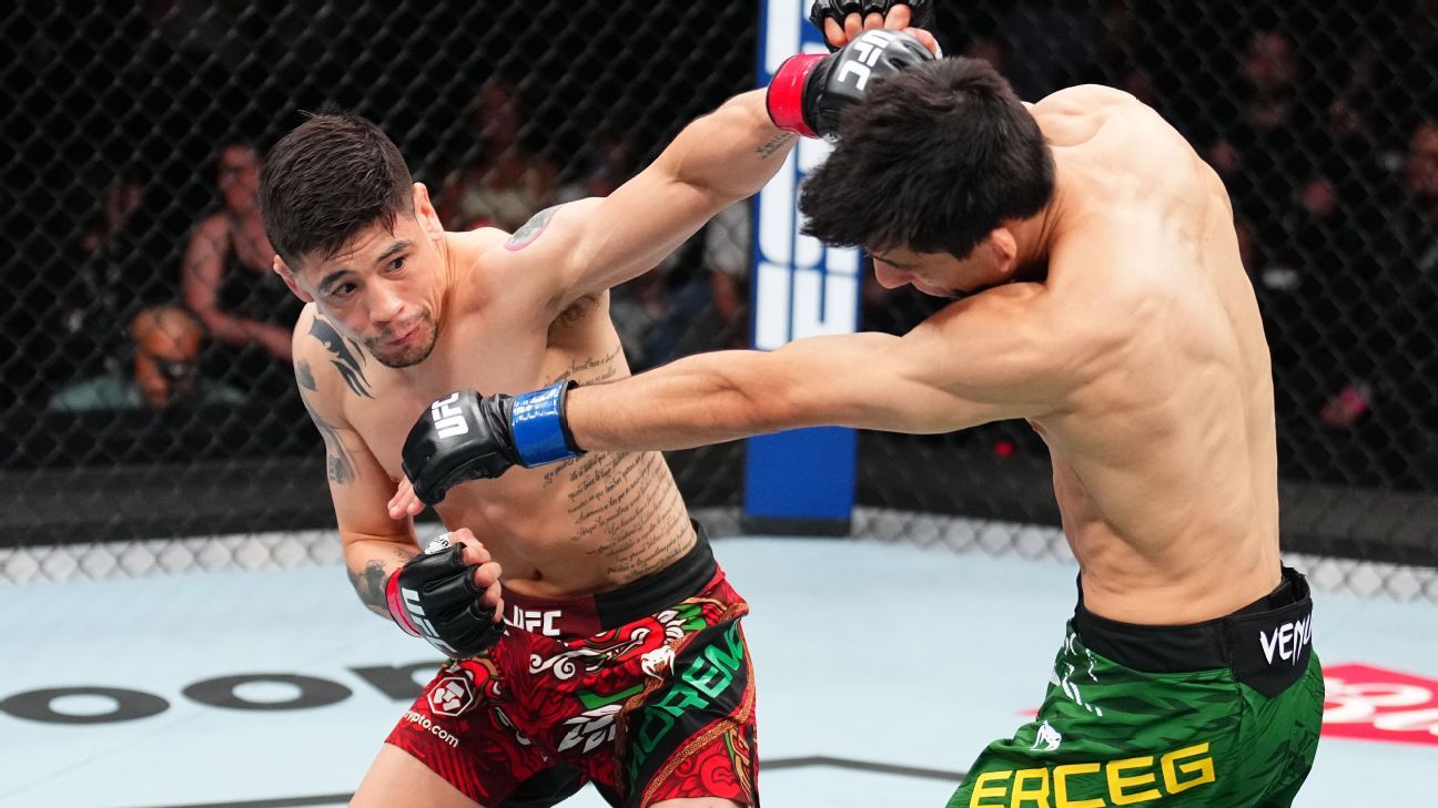 Moreno celebró por última vez el Campeonato UFC en 2023, cuando lo entregó al actual campeón Alexandre Pantoja en una pérdida de decisión dividida. Tomó una breve pausa del deporte en 2024, pero se ha visto increíblemente agudo en sus dos actuaciones desde entonces, contra Amir Albazi y Erceg.