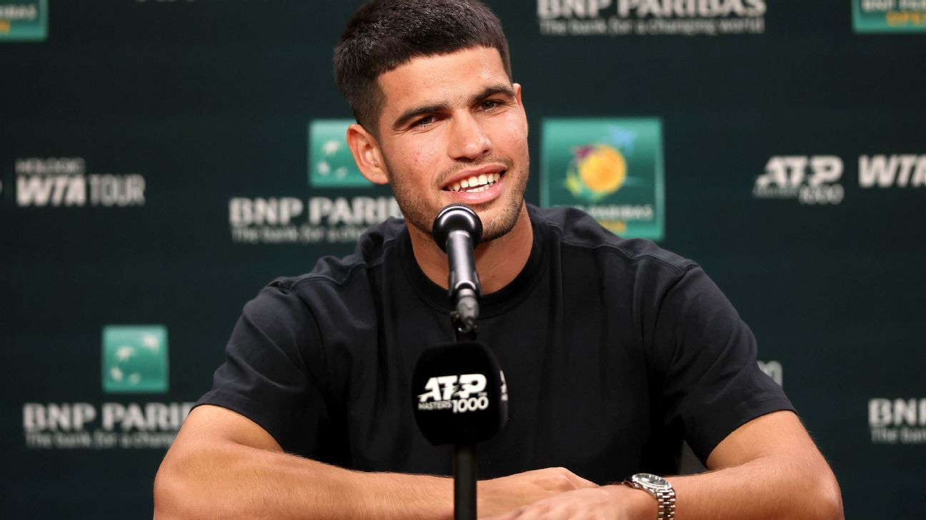 Indian Wells, California-Carlos Alcaraz, dos veces campeón defensor en el BNP Paribas Open, dijo que la ausencia del número 1 del mundo Jannik Sinner «no cambió (nada) en absoluto» para él en su preparación para el torneo de esta semana en Indian Wells.