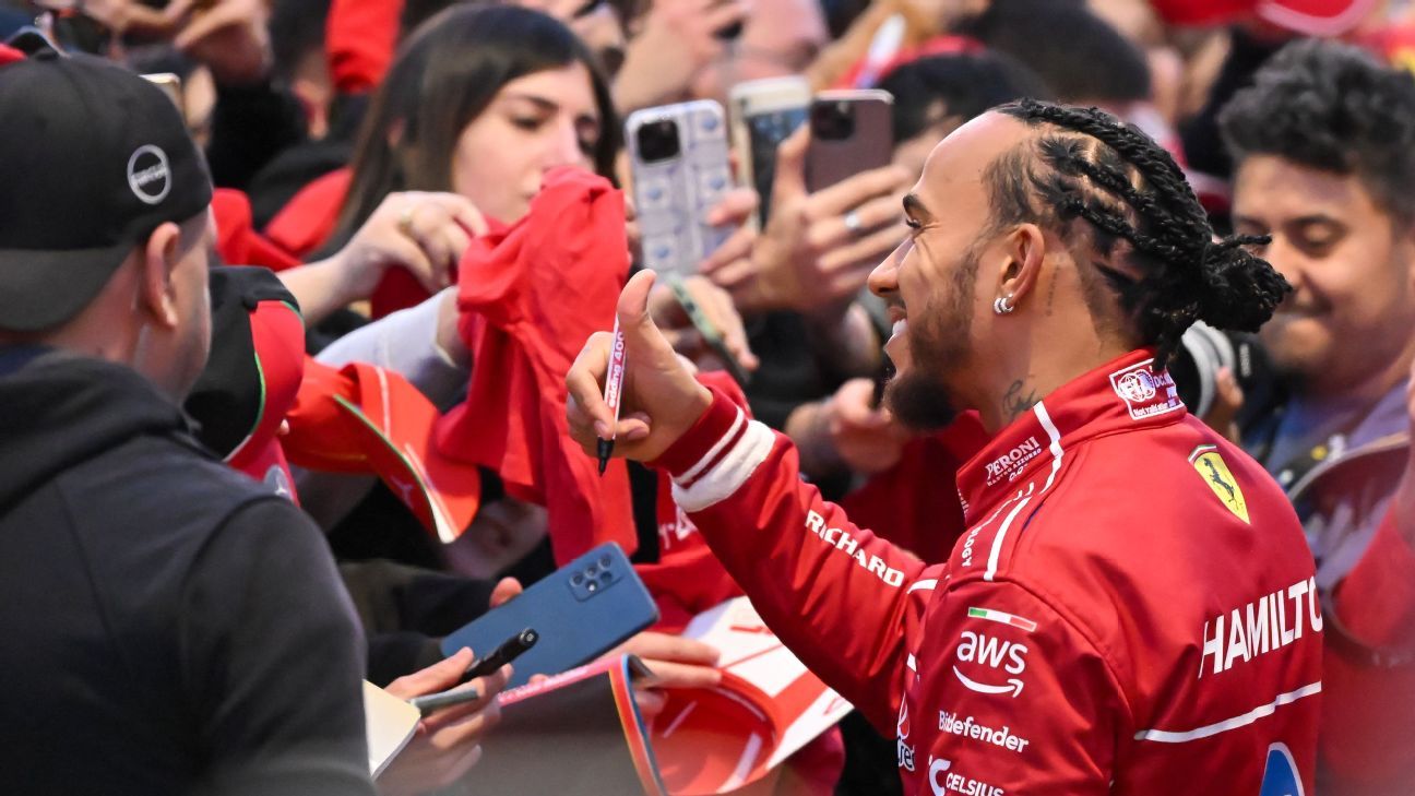 Lewis Hamilton sintió la fuerza de los fanáticos de Ferrari cuando él y su compañero de equipo Charles Leclerc avanzaron en la Piazza Castello de Milán el jueves antes de dirigirse a Australia para el comienzo de la temporada de Fórmula 1.