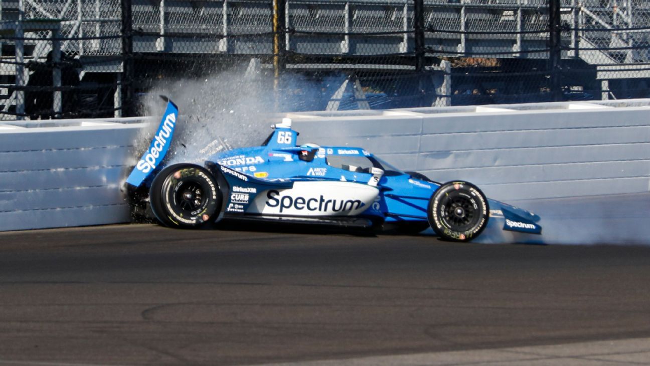 El joven de 24 años de Nueva Zelanda llegó a la pared al entrar en la curva 1 en el Motor Speedway de Indianapolis, donde los vientos que se rompen a casi 30 mph hicieron condiciones traicioneras cuando los autos se acercaron a 240 mph al final del largo tramo delantero.